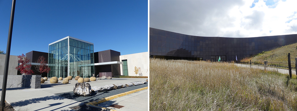 Optisch komplett anders präsentiert sich das South Dakota Cultural Heritage Museum in Pierre. Es wurde derart in einen Hügel eingebaut und in die Prärielandschaft eingebettet, dass nur der Eingangsbereich sichtbar ist. Damit erinnert das Museum einerseits an die Erdhäuser der einst hier lebenden Arikara-Indianer, andererseits an die „Sod Houses“ der ersten Siedler.