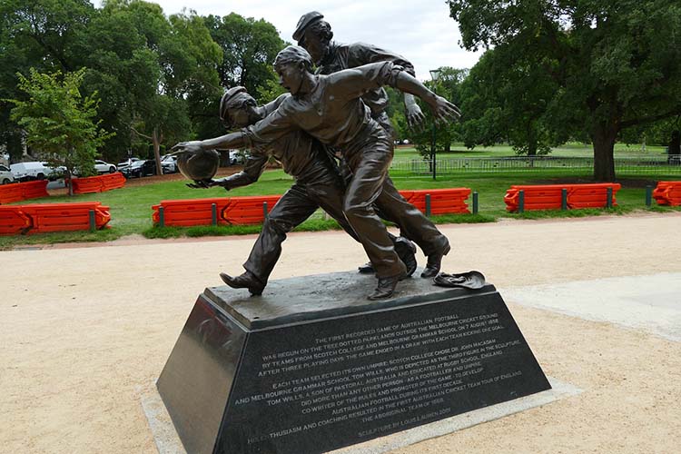 Zudem wird hier nicht nur nur Cricket gespielt, sondern auch andere Sportarten – besonders Australian Rules Football – sind hier zuhause und sogar Großevents finden statt. So wird im kommenden Herbst erstmals ein American Footballspiel – die Los Angeles Rams und San Francisco 49ers werden sich gegenüberstehen – in Australien ausgetragen. Der Weg zum MCG führt übrigens vorbei am Melbourne Tennis Center mit der berühmten Rod Lever Arena, wo jedes Jahr das Australian Open Tennisturnier stattfindet.