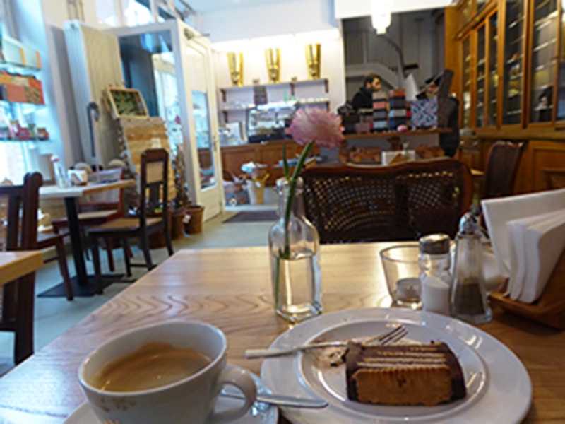 Besonders schön ist es, dass man die Erzeugnisse in der über 100-jährigen Regalwand im Geschäft an der Oranienstraße bewundern kann. In diesem quasi historischen Raum ist auch ein gemütliches Café integriert, wo es selbstgebackenen Kuchen und selbstkreierte, leckere Suppen (3 Euro) gibt – schön hier zu sitzen, um dem Treiben zuzuschauen. Und an einigen Tagen der Woche kann man hier auch zu Abend Tapas (vegetarisch oder mit Fleisch oder Fisch, nur 2 Euro) essen und Wein genießen, und im Anschluss dann vielleicht das eine oder andere