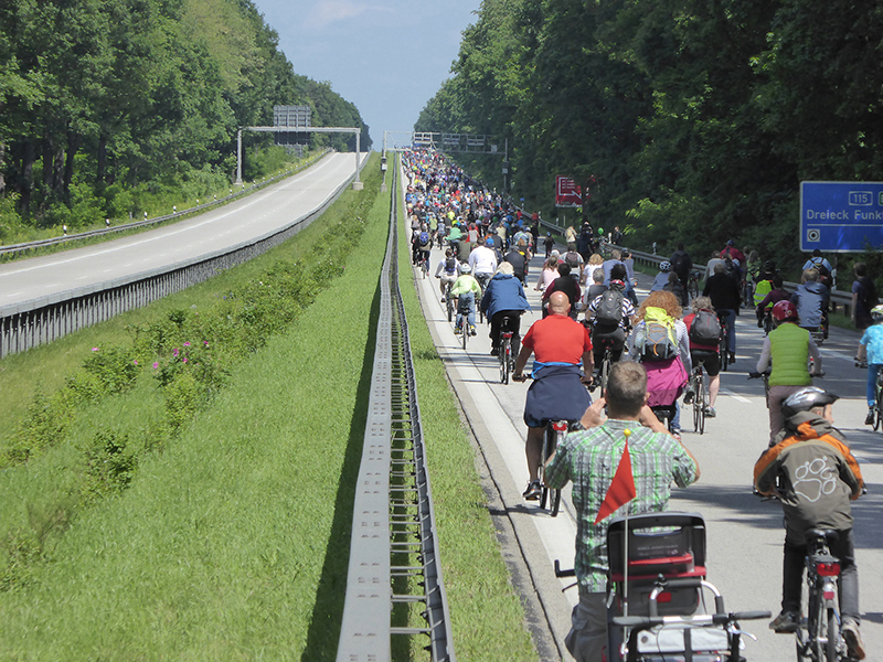 Am 1. Juni war es wieder so weit: Die alljährliche Sternfahrt für Radsicherheit in Berlin brachte die Autofahrer auf die Palme: Aus allen Richtungen (das Umland reichte bis Frankfurt an der Oder und Brandenburg!) fuhren zehntausende Radfahrer über den „Großen Stern“ (Siegessäule) auf das Brandenburger Tor zu. Straßen und Autobahnen(!) wurden für Stunden gesperrt.