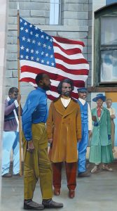 Sie trifft Leichendiebe, Kopfgeldjäger, obskure Ärzten, aber auch mutige Bahnhofswärter und lernt die ideologischen Fronten der Zeit kennen: die Abolitionisten, die Leibeigenschaft für Sünde hielten, und die ruchlosen Plantagenbesitzer, den monsterhaften Sklavenfänger Ridgeway und den afro-amerikanischen Freiheitskämpfer Frederick Douglass (s. Foto) in Gestalt von Elijah Lander.