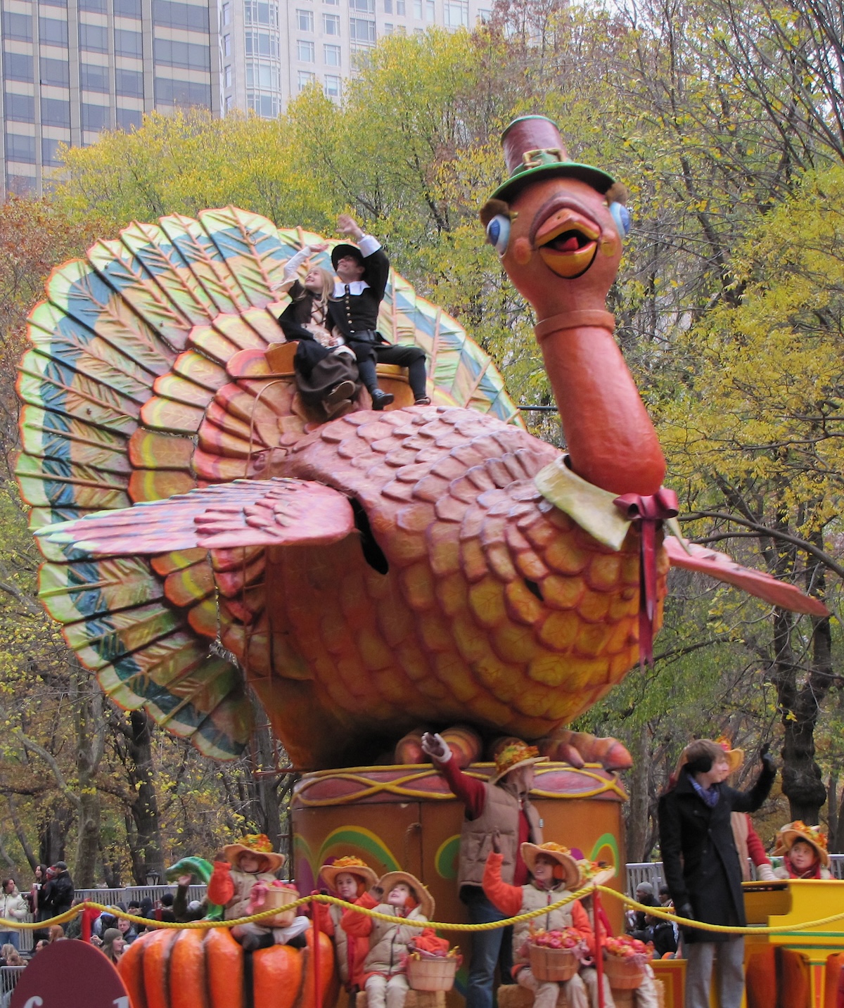 Wo lässt sich Thanksgiving besser erleben als in New York City? Bereits früh am Morgen sind die U-Bahnen voll, eine Viertelmillion Menschen strömen nach Manhattan um die legendäre Macy’s Thanksgiving Day Parade, dieses Jahr die 99ste, mitzuerleben. 1924 fand sie erstmals statt, damals waren sogar noch lebende Tiere dabei. 1927 wurden diese durch Ballonfiguren ersetzt, die inzwischen die Hauptattraktion des Umzugs bilden. Dieser beginnt in der Upper West Side am Central Park West/Ecke 77th Street, verläuft zum Columbus Circle und biegt dann auf den Broadway ab. Nachdem die Parade das Kaufhaus Macy’s, Initiator und Sponsor der Parade, passiert hat, biegt sie in die 34th Street Richtung 7th Avenue ein und endet dort.