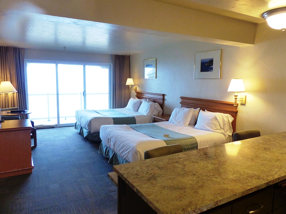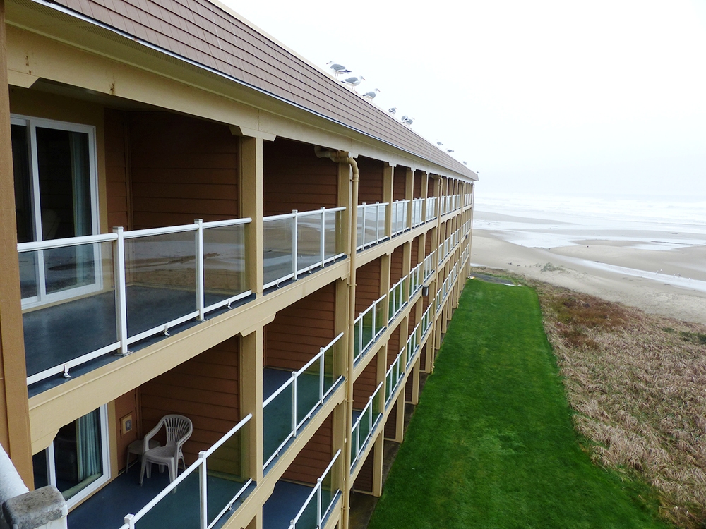 Es liegt günstig am Highway 101, zwar ein Stückchen vom Pazifik entfernt, doch dieses Manko wird kompensiert durch die erhöhte Lage des Baus und die vorhandenen Balkone. Dort sitzend, kann man nämlich gemütlich bei einer Flasche Oregon Wein und Oregon Käse den Sonnenuntergang über dem Meer genießen. Es empfiehlt sich, eines der 63 Zimmer (und Suiten) im zweiten Stock, Richtung Westen, zu buchen. Alle Zimmer sind groß und perfekt ausgestattet mit Kühlschrank und Mikrowelle, Kaffeemaschine und Gratis-WiFi, die Betten sind neu und bequem. Einige Zimmer haben sogar einen Kamin für kuschelige Wärme am Abend.
