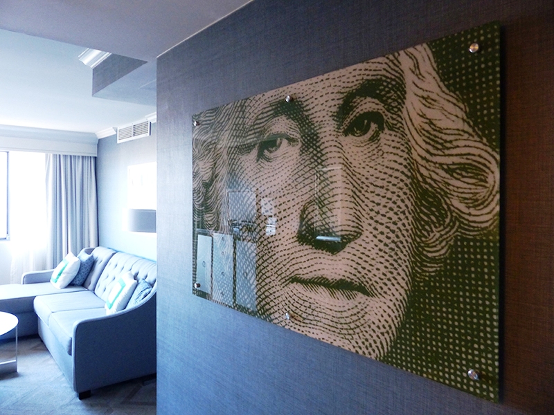 Das Melrose Georgetown Hotel ist ein 4-Sterne-Boutiquehotel und zwar mit gut 240 Zimmern weder klein noch bescheiden, aber dennoch angenehm unkompliziert und gemütlich. Das macht sich schon beim Eintreten in die Lobby bemerkbar, die in Grau-, Beige- und Brauntönen modern gestaltet ist und aus mehreren gemütlichen Nischen mit Sitzgruppen besteht. Besonders schön sind die „Library“ – mit über 100 Büchern – und die Plätze um den Kamin. Ein Restaurant, sehr schlicht, sehr dezent, nimmt den vorderen Teil der Lobby ein, eine gut sortierte Bar befindet sich gegenüber. Das Personal trägt dazu bei, dass man sich wohl fühlt, indem es z.B. bei der Begrüßung nicht nur, wie üblich, die hotelinternen Gegebenheiten schildert, sondern z.B. auch erwähnt, wo sich der nächste Lebensmittelladen, interessante Lokale und die nächste Metrostation befinden. The Melrose Georgetown Hotel befindet sich im NW-Quadranten der Hauptstadt, genau genommen im Viertel Foggy Bottom – wie das Weiße Haus – und nicht, wie der Name nahe legt, in Georgetown. Allerdings liegt das trendige Georgetown, bekannt für die Universität und die Hauptachse M Street, an der sich Lokale, Shops und Nightlife aufreihen, nur ein paar Hundert Meter entfernt. Zu den Hauptsehenswürdigkeiten wie dem Weißen Haus und der National Mall mit ihren Museen geht es unkompliziert per Metro. Die Station „Foggy Bottom“ liegt nur zwei Häuserblocks weg und die Haltestelle des DC Circulators quasi vor dem Haus.