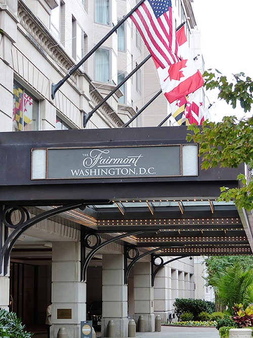 Nur etwa fünf Minuten zu Fuß vom Melrose Hotel entfernt und ebenso nahe an Georgetown und gut an den Nahverkehr angebunden, fällt der moderne Gebäudeblock des Fairmont Hotels ins Auge. Das Fairmont präsentiert sich – anders als das Melrose – elegant, und beeindruckt schon beim Eintreten. Die Lobby wirkt riesig und der angrenzende Wintergarten, genannt Courtyard Garden, ist grün und einladend. 415 Zimmer und Suiten stehen zur Verfügung, es gibt ein ganztägig geöffnetes Restaurant, ein Fitness Center mit Pool, Meeting-Räume und einen Ballsaal. In die für sich abgeschlossene Fairmont Gold Etage im 8. Stock kommen „Normalbürger“ hingegen kaum, hier residieren Stars aus Film und Fernsehen, vor allem aber Politiker und Geschäftsleute.