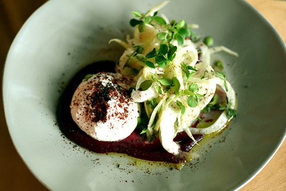 Im Restaurant Green Fig sind die Gerichte, deren Zutaten meist aus regionaler Herkunft stammen, zum Teilen am Tisch gedacht. Am besten beginnt man mit den Mezze (sechs kleinen Platten mit Appetithappen wie Hummus, Labane, 3-greenfigny-burrata-fotomtulipanAubergine oder eingelegten Gemüsen, serviert mit frischem Laffa-Brot) – ein Genuss für nur $ 18! Dann geht es weiter mit den kleinen Gerichten, der  „Light“-Abteilung auf der Karte: „It’s all about the mushroom“ ist z.B. eine grandiose Kombination aus verschiedenen Pilzen in unterschiedlichen Zubereitungsweisen oder das „Carrot Steak“, eigentlich simple Karotten vom Grill, besticht dadurch, dass es in einer wunderbaren marokkanischen Gewürzmischung mariniert wurde. Die Burrata (s. Titelfoto) wird in Kombination mit Variationen von Roter Bete zum ganz neuen Geschmackserlebnis.
