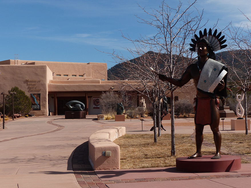 Museum of Contemporary Native Arts, Santa Fe. iwanowski.blogKunst und Kunsthandwerk, Indianer und Cowboys begegnen Besuchern in Santa Fe auf Schritt und Tritt. Auch die Museumsszene in der Stadt ist einmalig: Zeitgenössische indianische Kunst gibt es im MoCNA/Museum of Contemporary Native Arts (www.iaia.edu/museum) zu bewundern, während die Geschichte und Kunst der lokalen Indianerstämme im Museum of Contemporary Native Arts. iwanowski.blogMuseum of Indian Arts & Culture (www.indianartsandculture.org) anschaulich präsentiert wird. Letzteres befindet sich auf dem Museum Hill, einem Hügel südöstlich der Innenstadt, der nicht nur guten Ausblick bietet, sondern auch Standort weiterer Museen ist: Museums Hill mit Museum of Indian Arts & Culture. iwanowski.blog Das kleine Wheelwright Museum of the American Indian (https://wheelwright.org), das Museum of the Spanish Colonial Art (http://spanishcolonial.org) und das Museum of International Folk Art (www.internationalfolkart.org) gehören dazu.