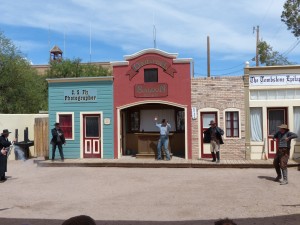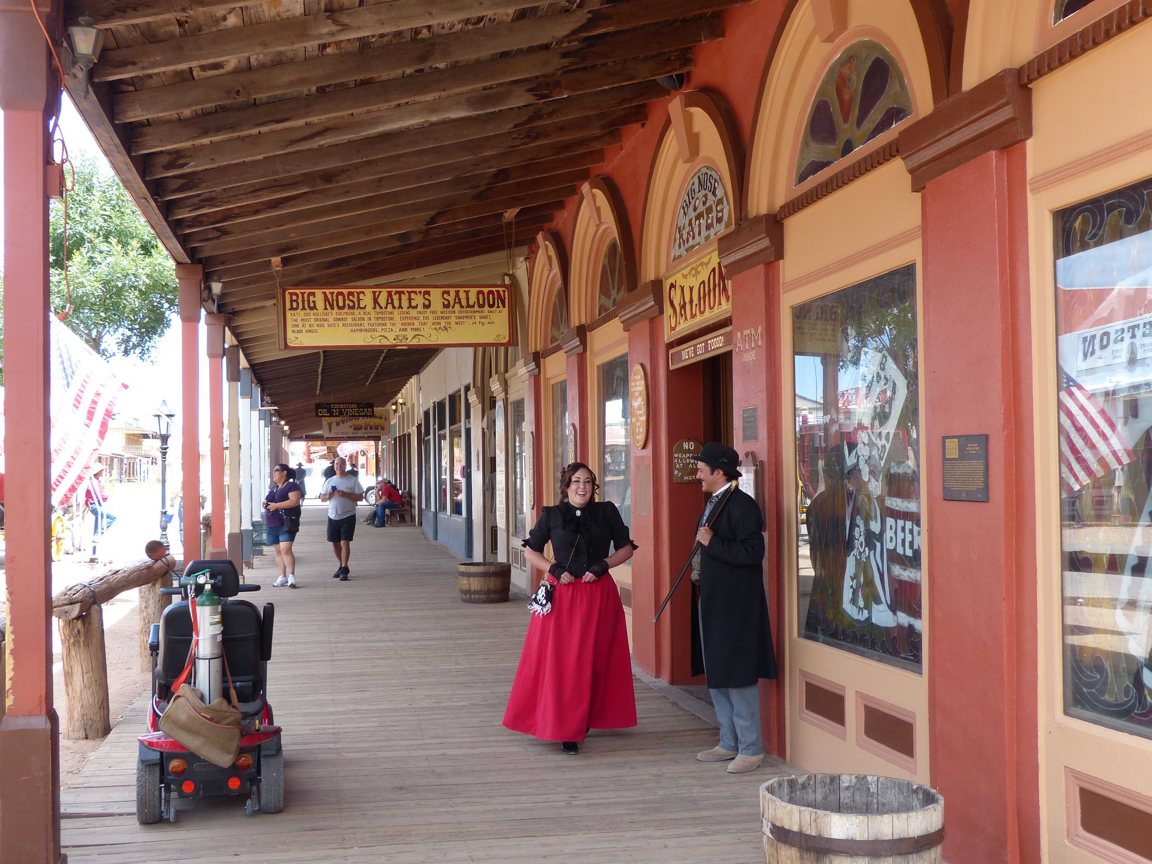 Eigentlich waren es nämlich Silberminen gewesen, die Tombstone in den 1880er Jahren zu einer der größten Städte des Westens machten. Obwohl der Abbau von Silber in großem Stil nur 15 Jahre andauerte, wurde Tombstone nie zu einer Geisterstadt – im Gegenteil, der Ort ging als „town too tough to die“ in die Geschichte ein. Weder Schießereien, noch Feuersbrünste oder wirtschaftlicher Niedergang konnte den Ort und seine Bewohner niederzwingen: Nach dem Motto „no winners, no losers, just survivor“ überdauerte der Ort alle Unbilden der Epochen und lebt als Touristenziel von seiner schießwütigen Vergangenheit. Entlang der Allen Street, Tombstones alter Hauptstraße, sind in den historischen Häusern Souvernirläden und Lokale eingezogen. In Saloons wie dem historischen Crystal Palace oder Big Nose Kate’s, im alten Bird Cage Theatre oder dem prächtigen Courthouse von 1882 lebt die Vergangenheit fort.