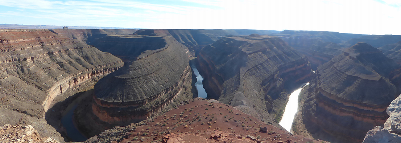 Anders als Moab und die dort liegenden Nationalparks – Arches und Canyonlands NP –, wo es im Sommer heiß hergeht und vor Besuchern wimmelt, ist Bluff beschaulich geblieben, erst recht in der Nebensaison. Dabei gibt es im näheren Umkreis grandiose Aussichtspunkte, die ihresgleichen suchen, sei es von den Goosenecks oder vom Valley of the Gods, vom legendären Moki Dugway oder vom Muley Point. Bei klarer Sicht hat man da nicht nur das Monument Valley vor Augen, sondern blickt auch auf die entfernten Bergketten in Arizona, New Mexico und Colorado und hat die Bears Ears und die Comb Ridge im Rücken. Ganz anders wiederum der Blick vom Boot aus, auf Tour