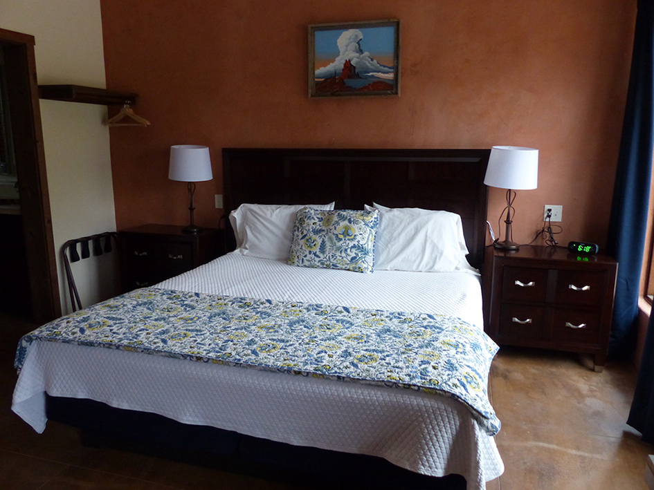 Die Badezimmer sind geräumig mit Jet-Badewanne und Dusche, in farbenfrohem, mexikanisch-inspiriertem Design. Ein besonderer Bonus des Hotels ist das hausgemachte Frühstück mit frisch gebackenem Brot und anderen Backwaren, frisch gepresstem Saft sowie einem täglich wechselnden Hauptgericht, z.B. Quiche oder Bread Pudding, und ausgezeichnetem Kaffee. Serviert wird es im Frühstücksraum, wo sich auch die Rezeption befindet, oder auf der Terrasse.