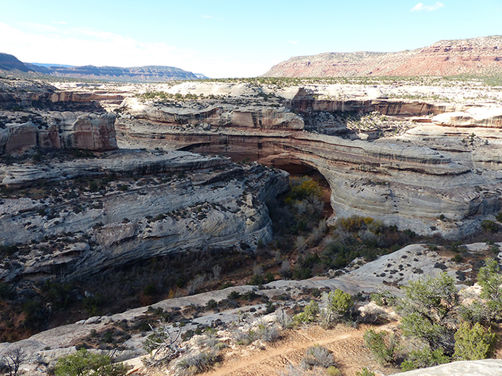 Dazu gehören beispielsweise das Monument Valley, das Navajo National Monument, der Natural Bridges National Park (siehe Foto), der Goosenecks State Park (kl. Foto), der Edge of the Cedars State Park mit seinem beeindruckenden Museum oder das Hovenweep National Monument.