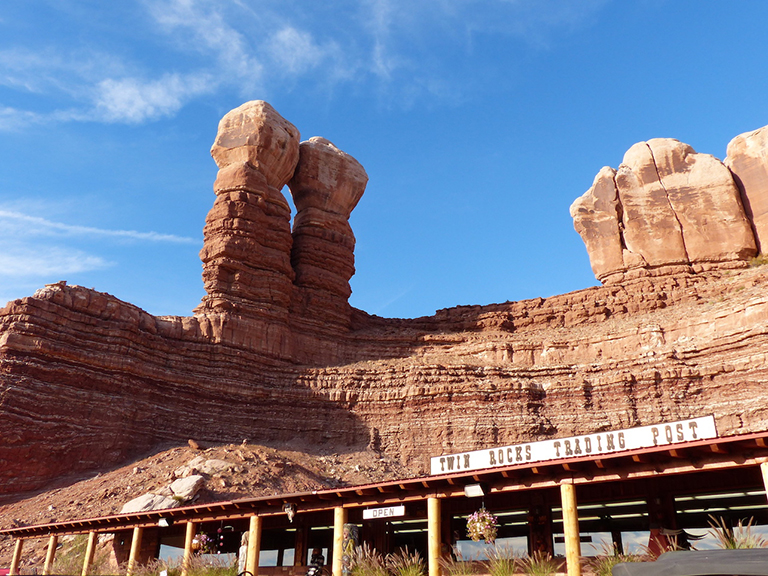 Der Ort verfügt zwar über keinen Supermarkt und nur über eine Handvoll (ausgezeichneter) Restaurants, wie Twin Rocks Cafe, Comb Ridge Bistro oder San Juan River Kitchen, dafür aber über zwei herausragende Hotels. Das eine, La Posada Pintada – „The Painted Inn“ – beherbergt seit 2013 in einem mexikanisch-inspirierten Adobe-Gebäude Gäste. Es firmiert mit seinen nur zehn Zimmern auf zwei Etagen als „Boutiquehotel“. Abseits der Durchgangsstraße gelegen, handelt es sich um einen ruhigen und luxuriösen Rückzugsort in traumhafter Lage. Von Terrasse oder Balkon, der zu jedem Zimmer gehört, schweift der Blick in Richtung rote Felsformationen.
