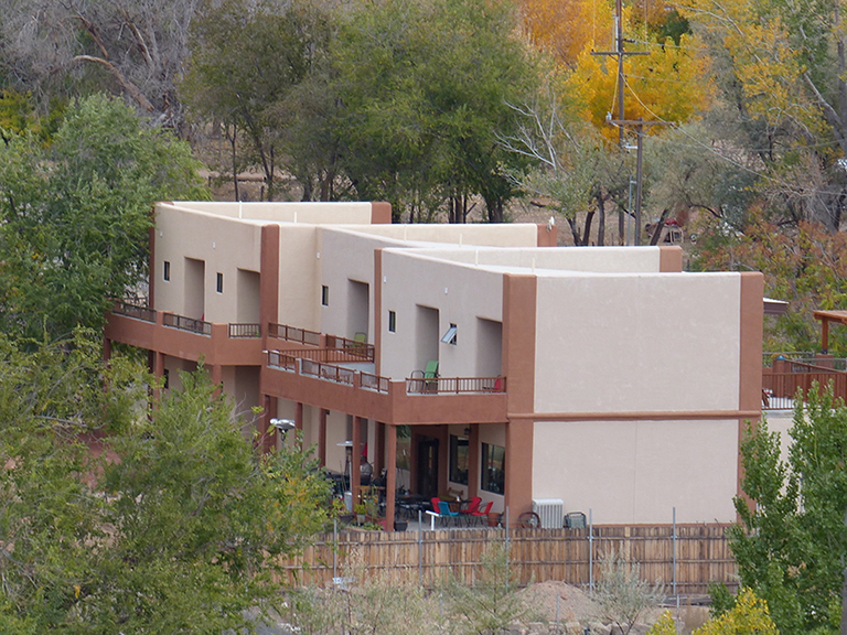 Das Desert Rose Inn & Cabins, ein mehrteiliger Komplex, liegt am anderen Ende des Dorfes, zwar an der Hauptstraße, aber trotzdem ruhig. Amer und Cindy Tumeh hatten 1997 mit fünf Cabins den Grundstein gelegt, 1999 kam eine Lodge mit 30 Zimmern dazu. 2014 eröffnete ein weiterer Trakt, dieser mit großem Swimmingpool und Jacuzzi, Fitnessraum, einladender Gäste-Lobby und Meeting Rooms. Die hier befindlichen 16 neuen „Courtyard Rooms“ sind groß,