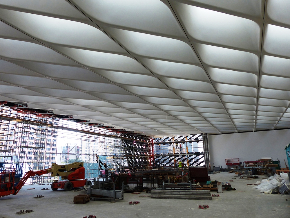 Das Broad Museum nimmt Gestalt an, obwohl es erst 2015 eröffnen wird. Bei freiem Eintritt werden dann rund 250 zeitgenössische Kunstwerke aus der umfangreichen Sammlung von Eli und Edythe Broad (insgesamt ca. 2000 Kunstwerke), Nachkriegskunst und Zeitgenössisches, an der Grand Avenue in Downtown Los Angeles zu sehen sein. Diller Scofidio + Renfro plante das $ 140 Mio. teure Gebäude. An das Museum grenzt im Süden eine neue mit alten Olivenbäumen begrünte Plaza an, auf deren Schmalseite ein Restaurant. Das Besondere am Museumskonzept ist, dass öffentlich zugängliche Ausstellungsflächen gekonnt mit Archiv- und Lagerräumen verbunden werden, die für Besucher einsehbar sind. Ungewöhnlich ist auch die Fassade, eine Art Schleiergespinst, das Tageslicht eindringen lässt. Schräg gegenüber der Baustelle entsteht gerade an der Kreuzung mit der 2nd Street vom Reißbrett von Frank Gehry (wie die Disney Concert Hall direkt gegenüber) ein neuer Shopping-Hotel-Komplex, der zusammen mit Broad, MoCA, Colburn School und Concert Hall einen spannendes Kunstareal mitten in Downtown LA bilden soll.
