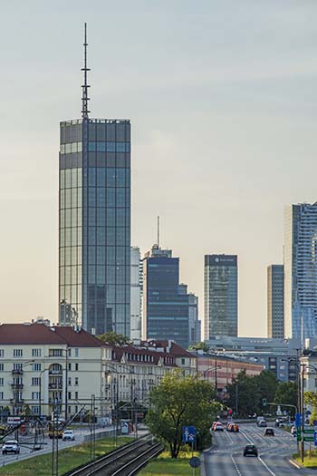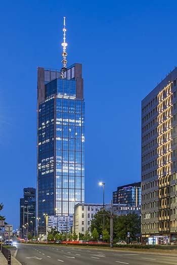 In der Hauptsache dient das im neomodernen Stil errichtete Gebäude als Bürokomplex. Atemberaubend ist die Fahrt nach oben im lautlosen Glasaufzug, die Aussicht auf Warschau wird zum Vogelflug.
